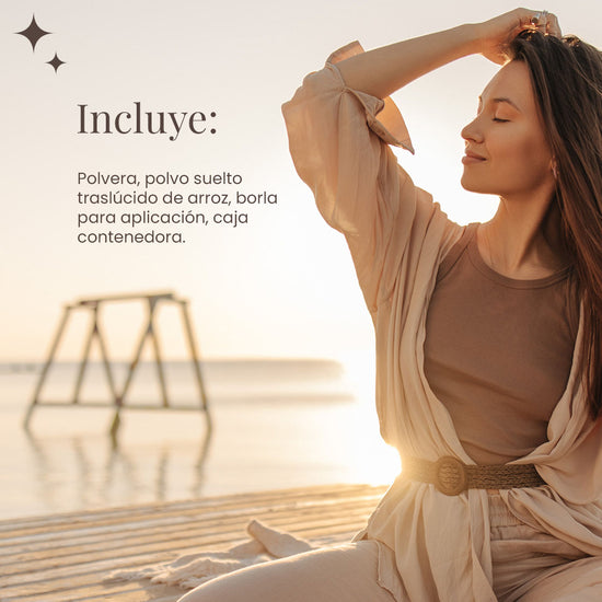 Es un polvo traslúcido suelto de textura ligera y suave al tacto, con un exquisito y característico aroma. Contiene ingredientes minerales con cualidades astringentes, antisépticas y de protección solar. Para su uso en todo tipo de piel. Efecto mate, prologa la duración de tu maquillaje, unifica el tono de tu piel o maquillaje dando un acabado natural, sedoso y perfecto.
